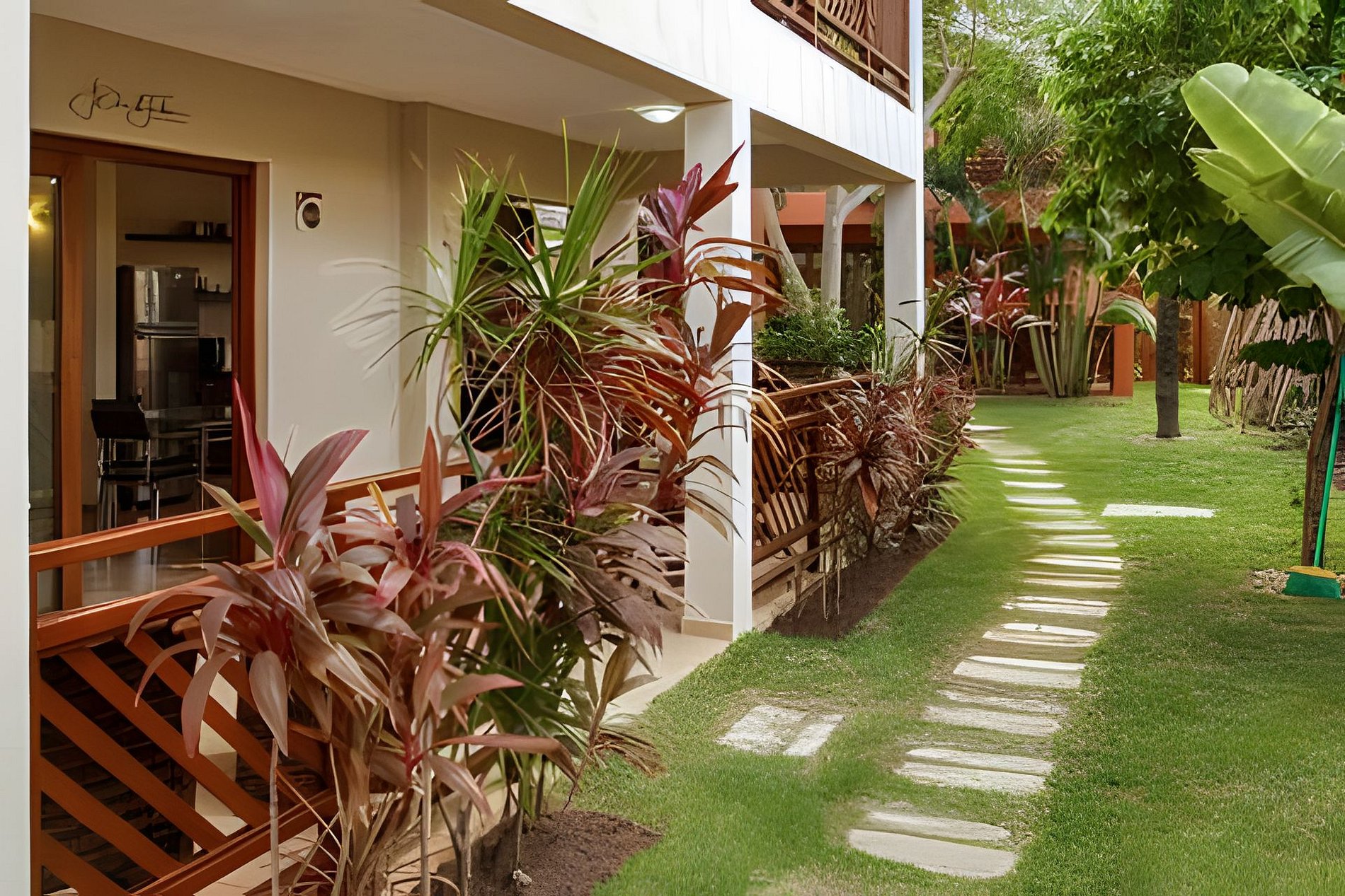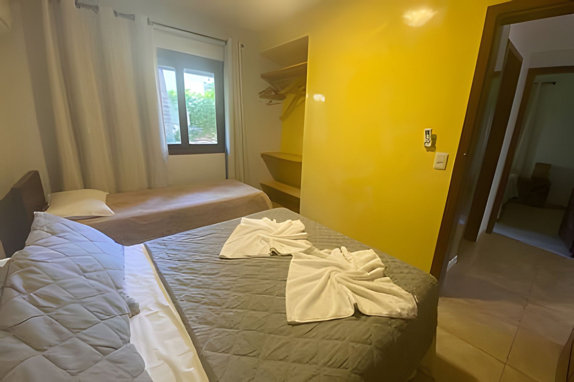 O apartamento esta instalado no piso térreo, em uma localização mais privativa, é mais amplo e conta com suíte dando mais privacidade aos hospedes.