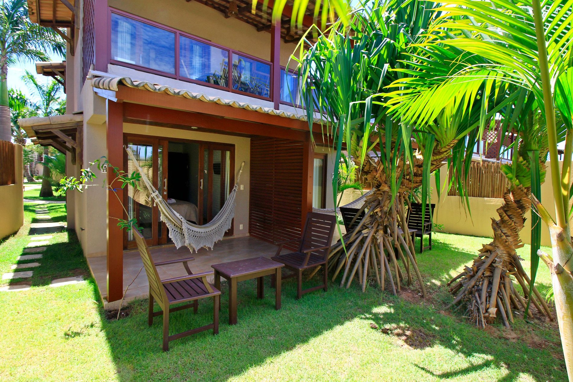 As suítes são quartos pequenos com banheiro e varanda com rede, instaladas no piso térreo, para 2 pessoas, ideais para casais que buscam passar o dia nas praias e passeios, e precisam de um local confortável para descansar. Além disso, podem aproveitar os benefícios que o condomínio Pipa Beleza oferece: piscinas, estacionamento, segurança e portaria 24 horas.