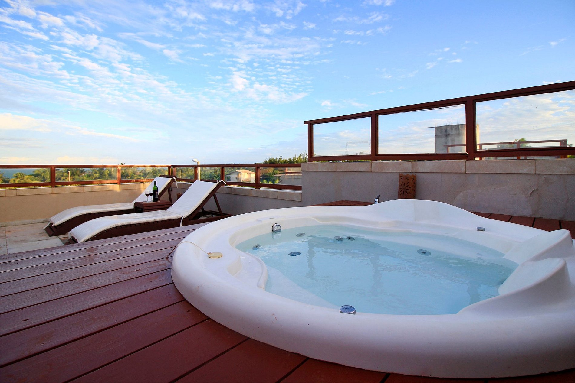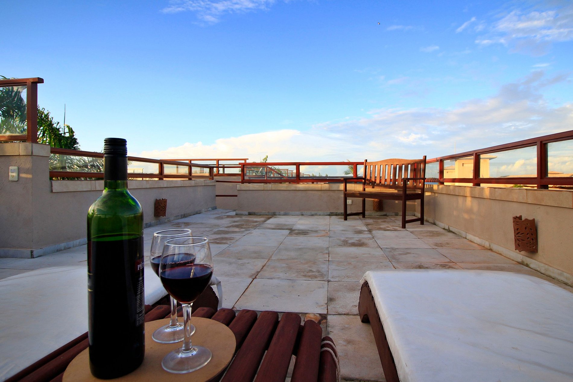 Esse apartamento é uma excelente opção para casal que gosta de conforto, por estar instalado no piso superior, e ser completo com sala, cozinha e uma varanda muito agradável. Além disso, possui um solário aberto, na cobertura, com banheira de hidromassagem e uma vista maravilhosa!