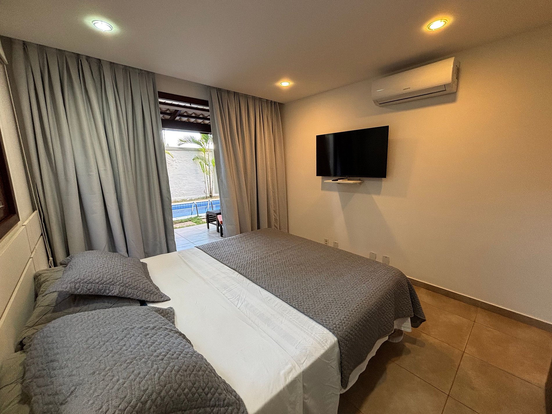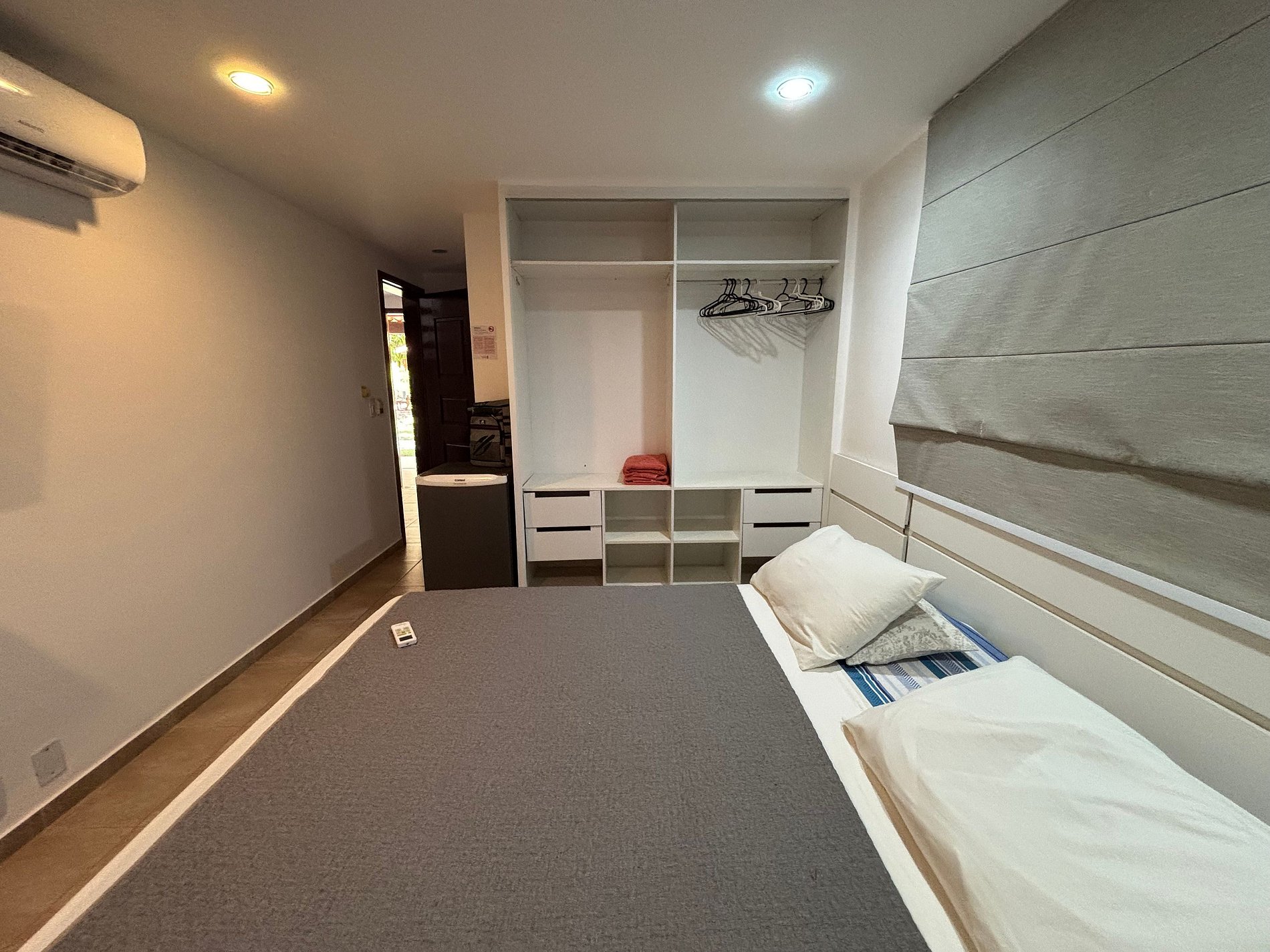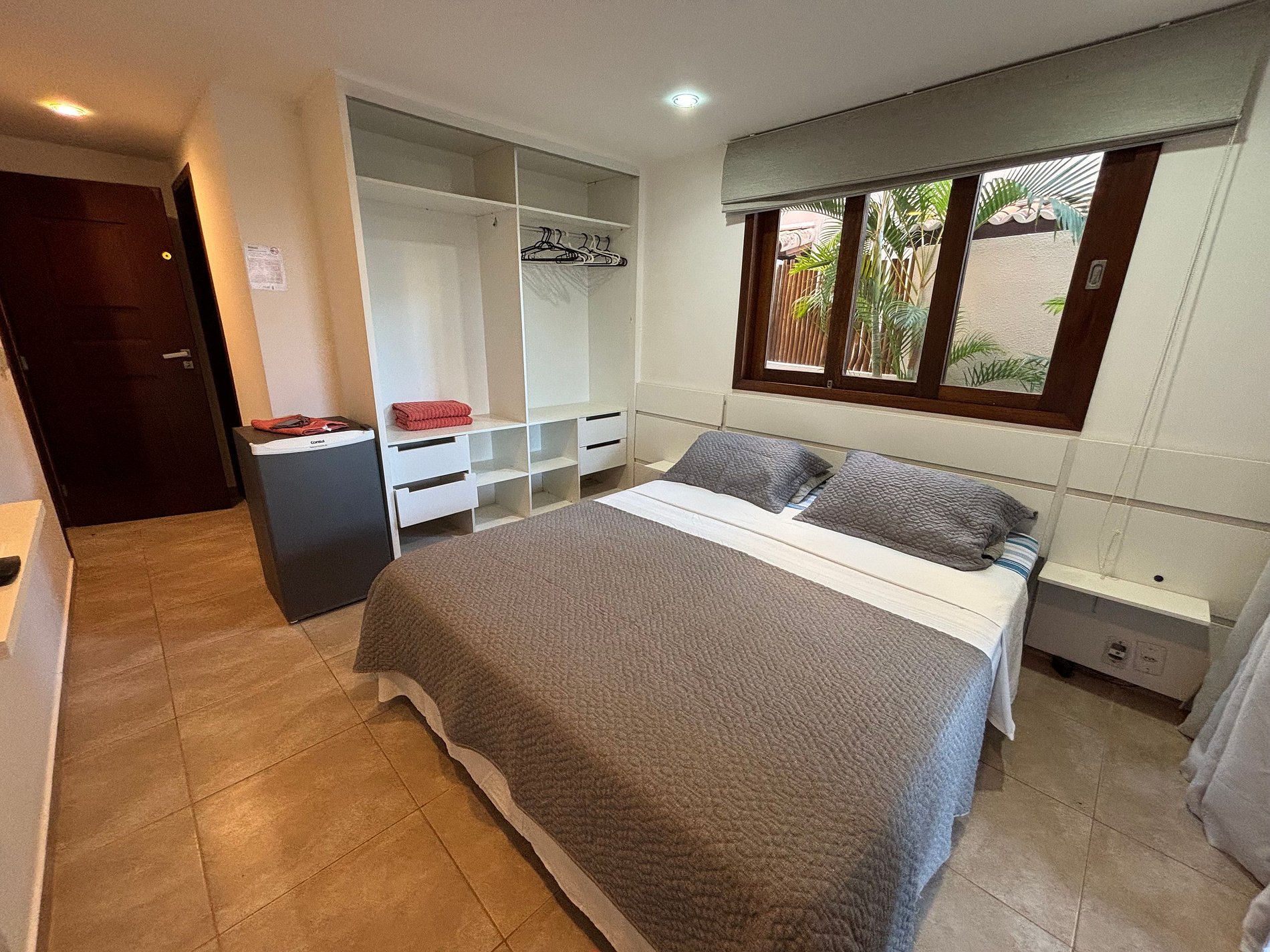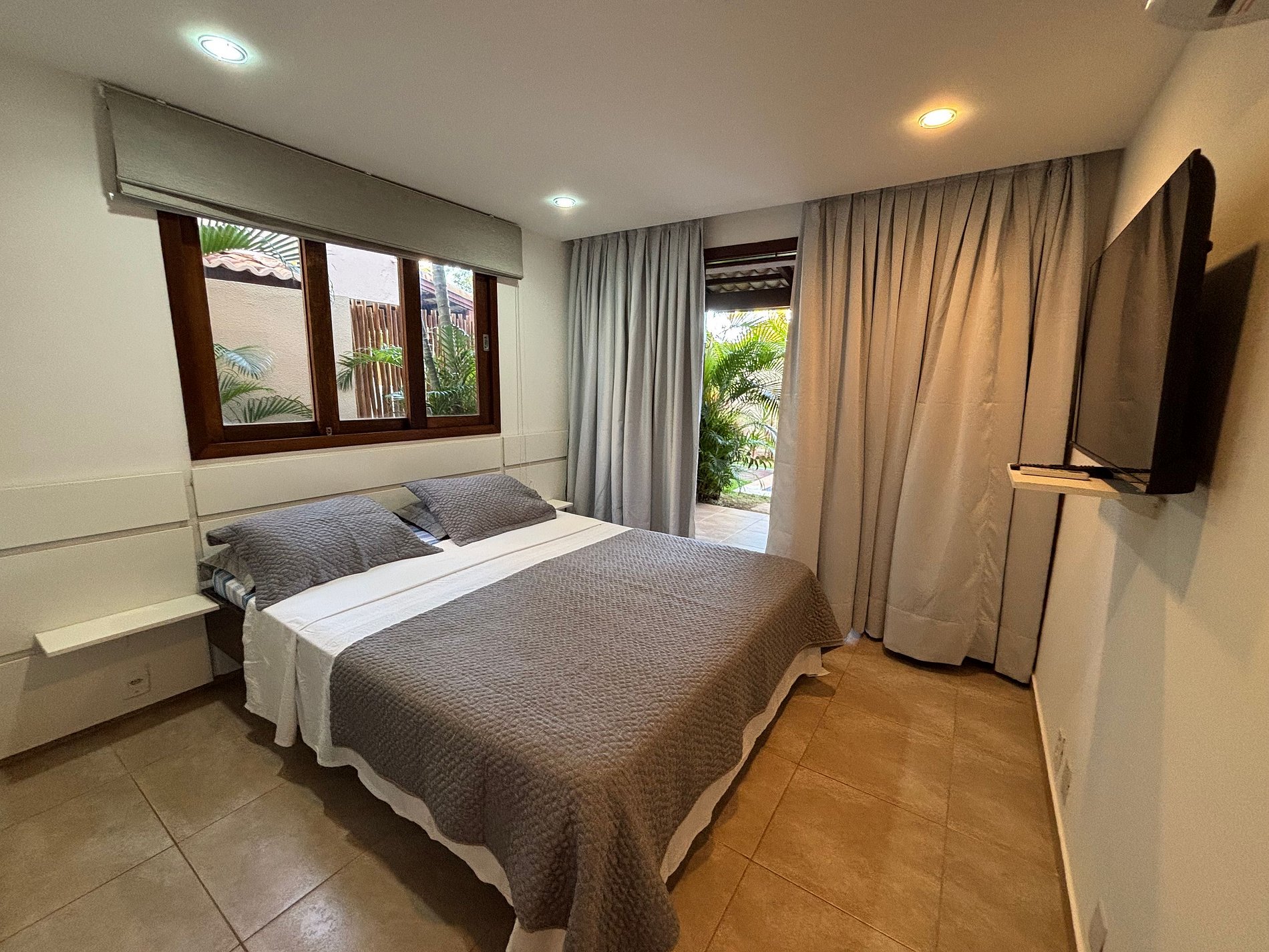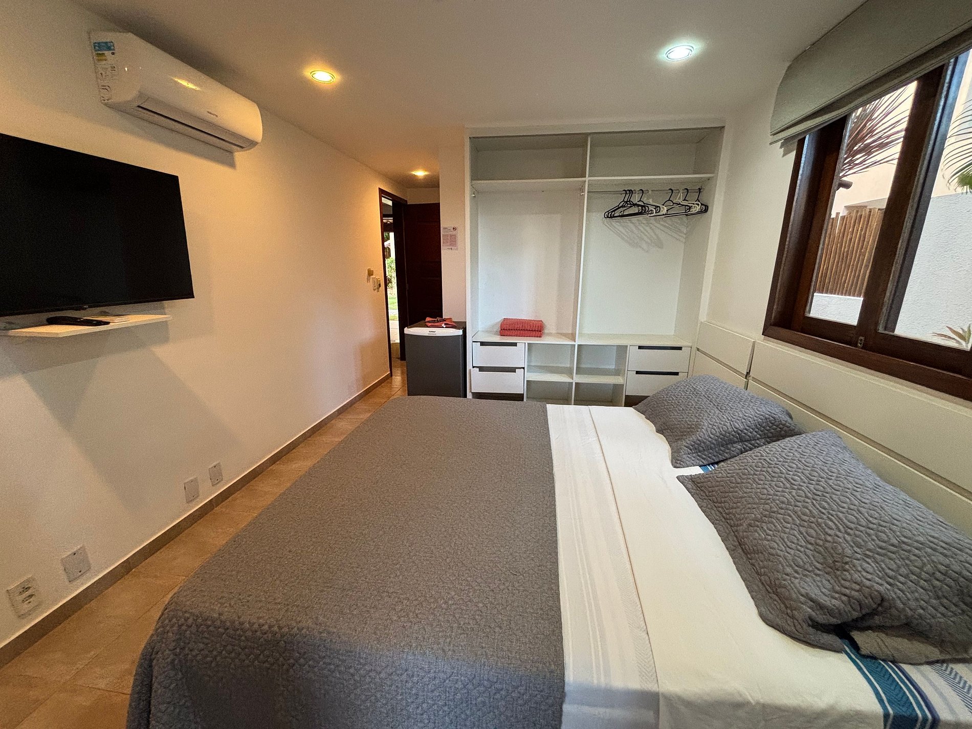 A suíte é uma excelente opção para quem precisa de um quarto para descansar, mas prefere economizar e aproveitar mais os passeios e praias de Pipa. Além disso poderá também contar com os benefícios do condomínio: piscinas, segurança e portaria 24 horas.